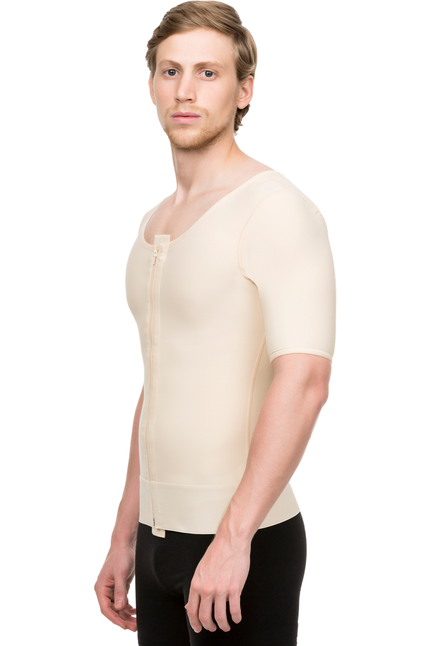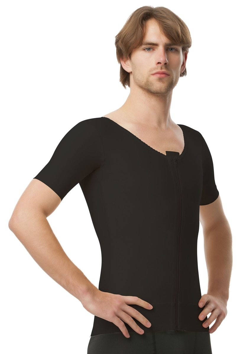 Camiseta con manga corta de compresión para hombre postquirurgica con ziper (MG06)