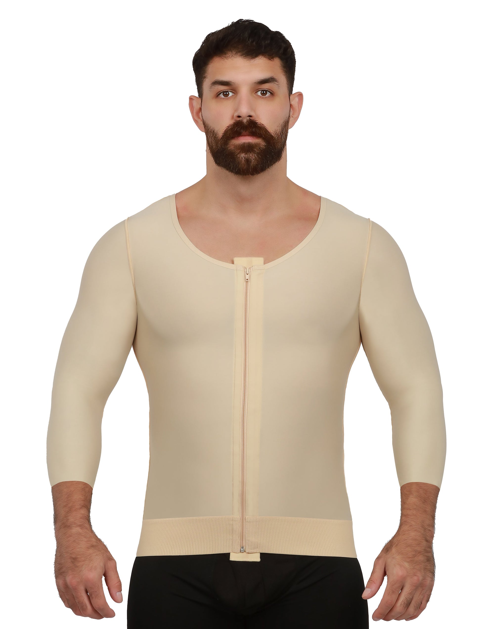 Camiseta de compresión con mangas largas y zipper para hombre postquirurgica (MG06)
