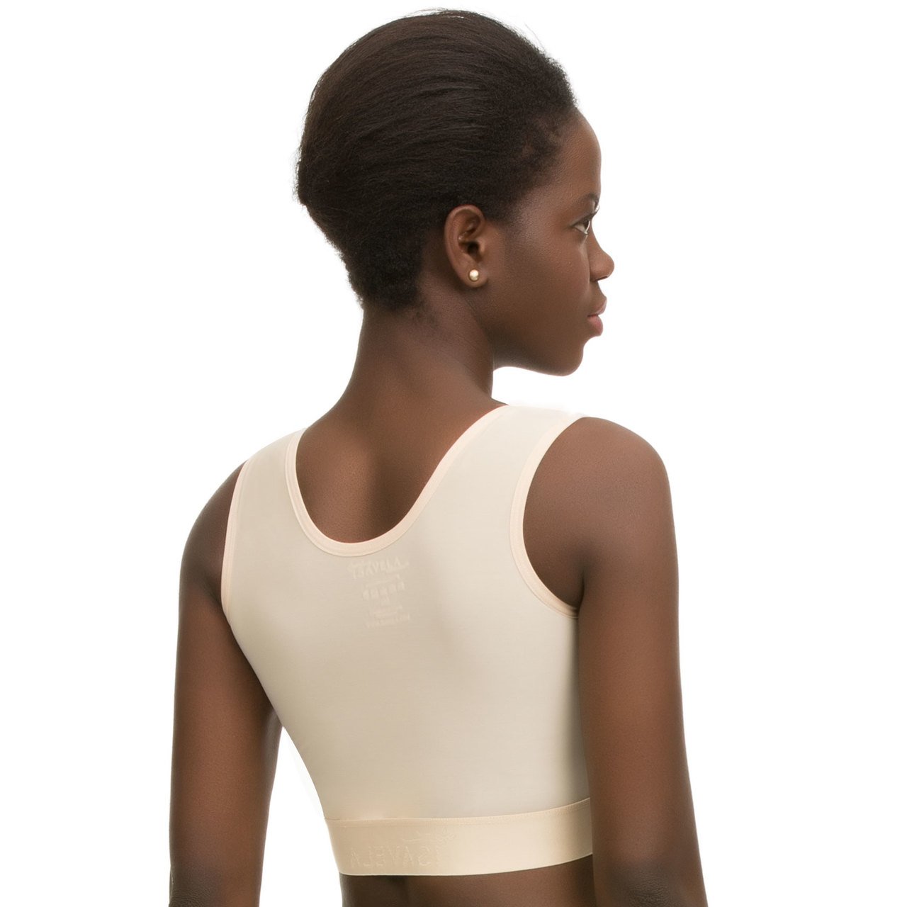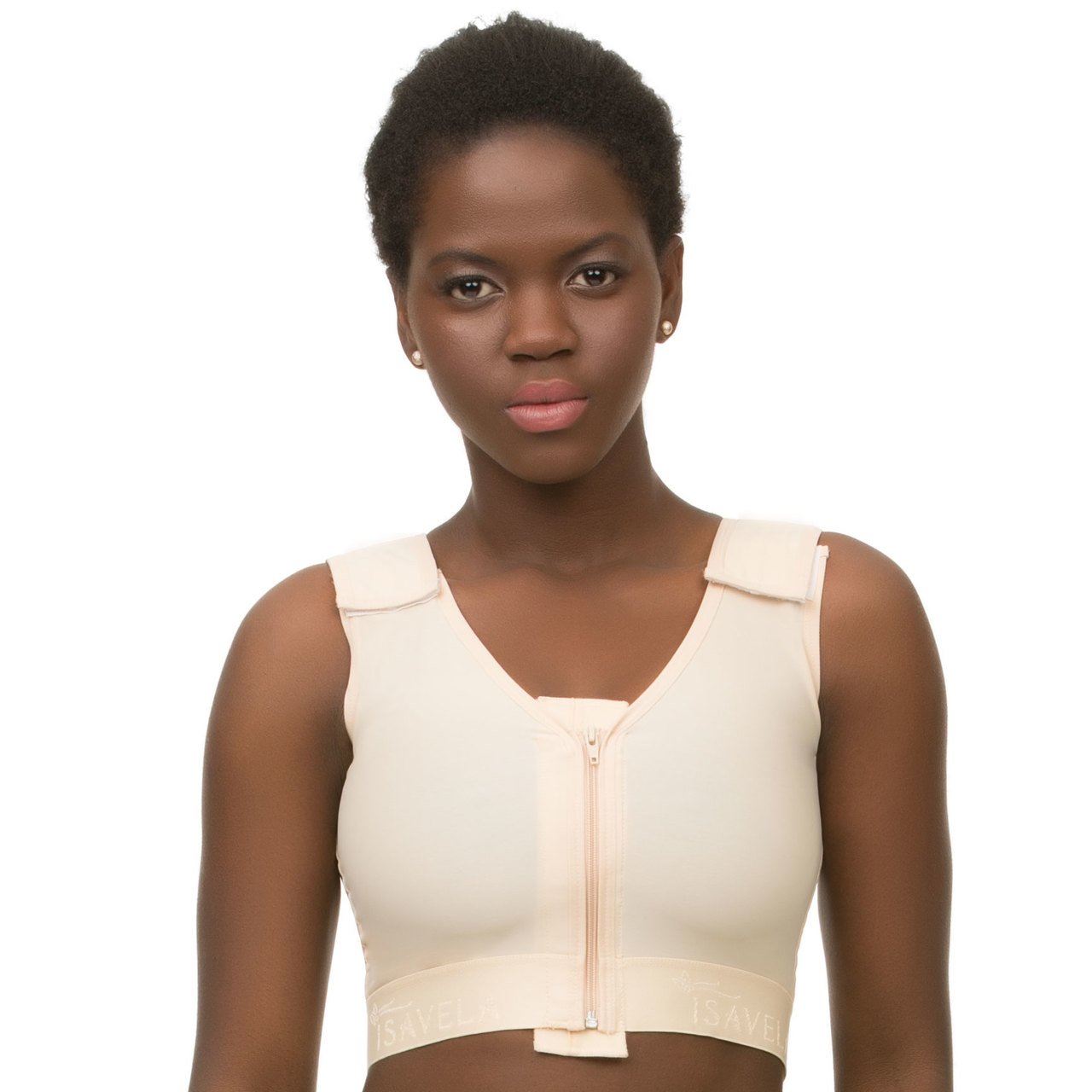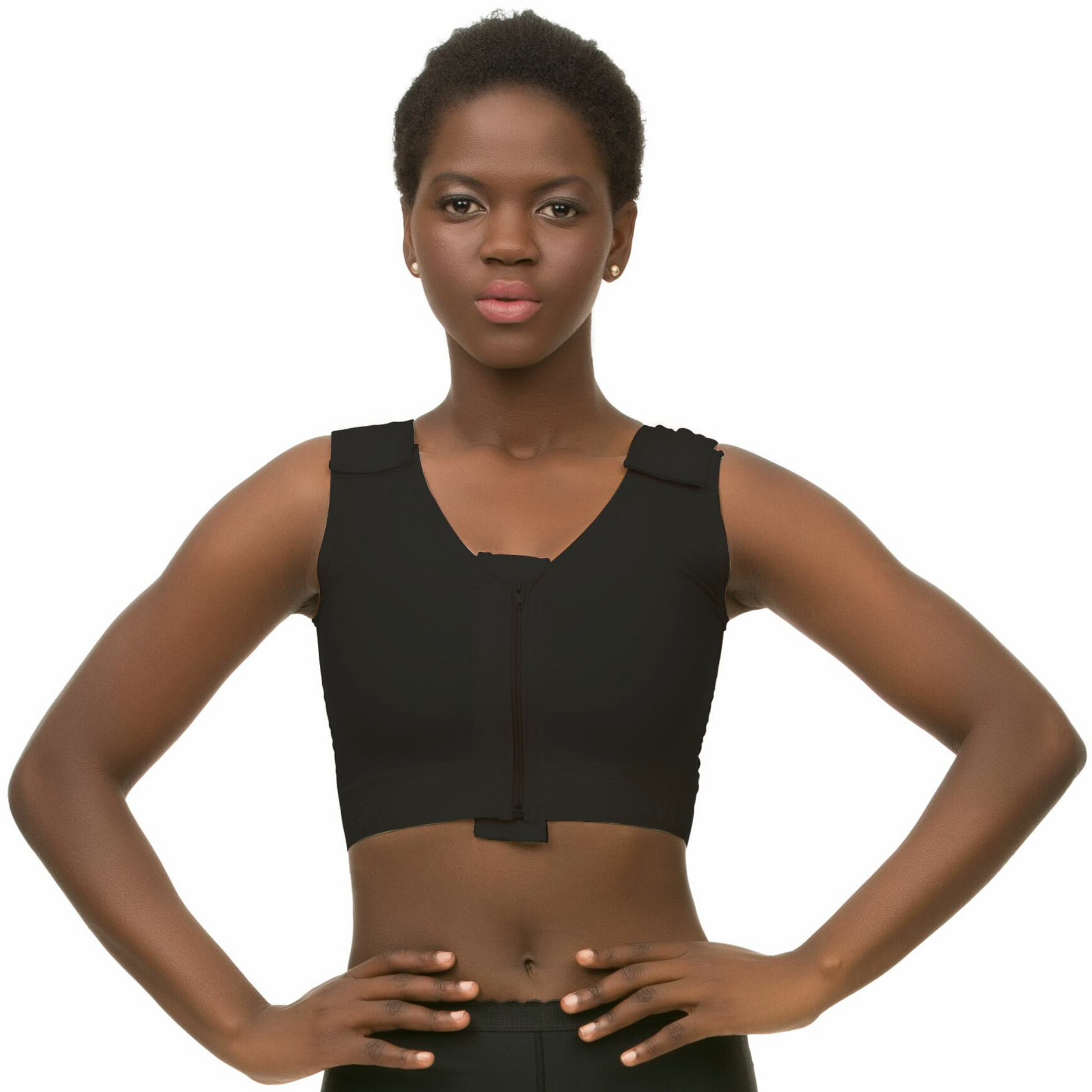 This longline bra has padding underneath the zipper, making it perfect for recovery from a variety of cardiac surgeries.