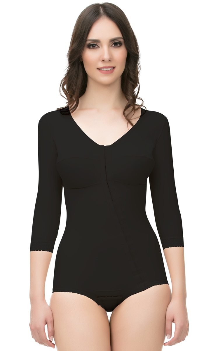 - Faja de espalda alta con mangas de 3/4, un sostén quirúrgico incorporado,