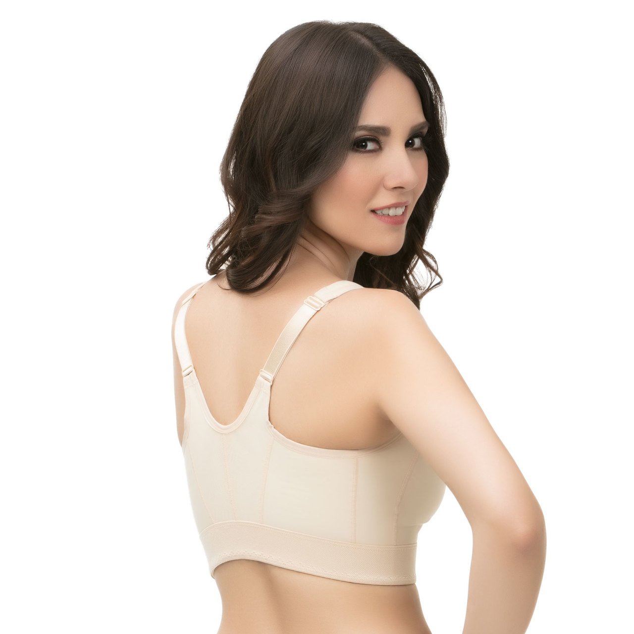 Brasier Sujetedor Deportivo para mujer de corte largo con cierre de ojal y gancho frontal, postquirúrgico de compresión (BR09)