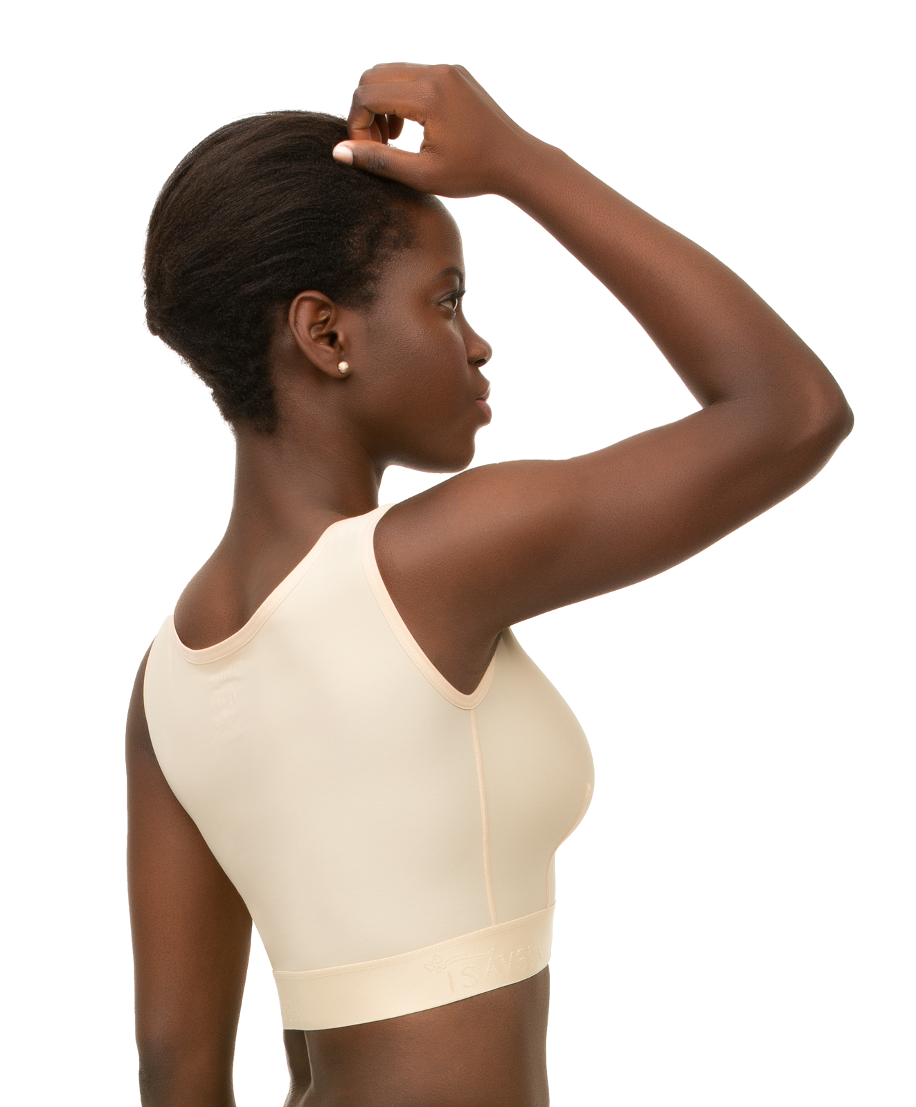 This vest has a built-in surgical bra and compresses the arms, back, and ribs.